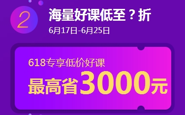 6月17日-6月25日精品好課折扣大放送,超值精品班課程85折,高效取證班課程8折,私教特訓班課程75折,與幸運大轉盤的學費紅包同享,折上折優(yōu)惠低至68折。