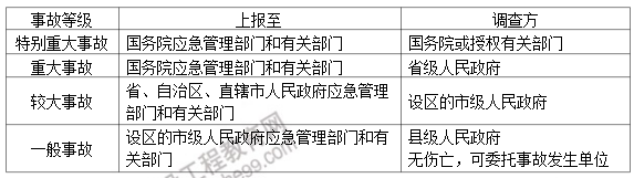 重大事故、較大事故、一般事故分別由事故發(fā)生地省級(jí)人民政府、設(shè)區(qū)的市級(jí)人民政府、縣級(jí)人民政府負(fù)責(zé)調(diào)查。省級(jí)人民政府、設(shè)區(qū)的市級(jí)人民政府、縣級(jí)人民政府可以直接組織事故調(diào)查組進(jìn)行調(diào)查,也可以授權(quán)或者委托有關(guān)部門組織事故調(diào)查組進(jìn)行調(diào)查。未造成人員傷亡的一般事故,縣級(jí)人民政府也可以委托事故發(fā)生單位組織事故調(diào)查組進(jìn)行調(diào)查。