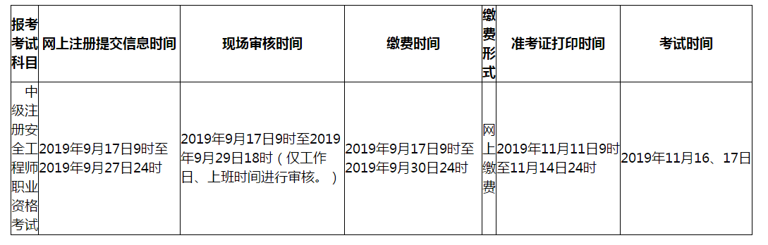 關(guān)于2019年度中級(jí)注冊(cè)安全工程師職業(yè)資格考試報(bào)名安排的通知