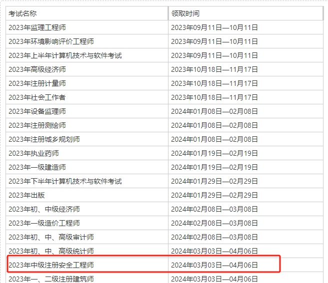 海南2023年中級(jí)注冊(cè)安全工程師職業(yè)資格考試合格證書(shū)領(lǐng)取通知