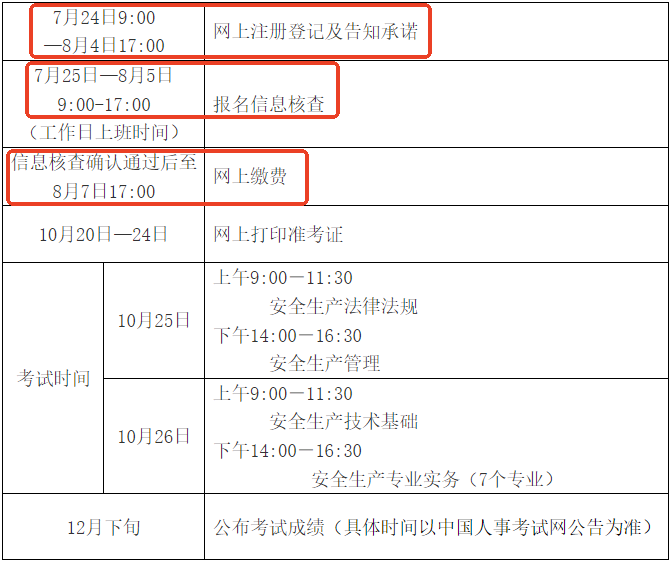 摘要:江西2025年中級(jí)注冊(cè)安全工程師網(wǎng)上注冊(cè)登記及告知承諾:7月24日9:00-8月4日17:00,報(bào)名信息核查:7月25日-8月5日(9:00-17:00),網(wǎng)上繳費(fèi):信息核查確認(rèn)通過后至8月7日17:00。