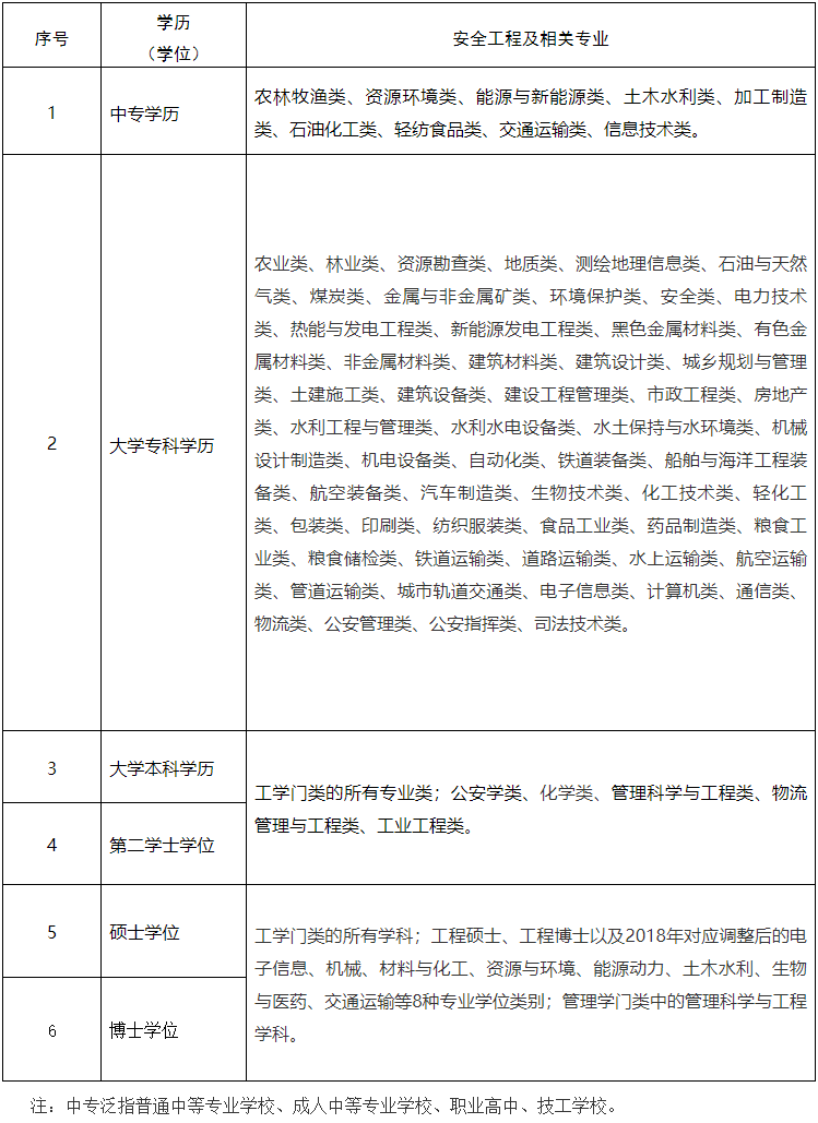 1.具有安全工程及相關(guān)專業(yè)大學(xué)??茖W(xué)歷,從事安全生產(chǎn)業(yè)務(wù)滿5年;或具有其他專業(yè)大學(xué)??茖W(xué)歷,從事安全生產(chǎn)業(yè)務(wù)滿6年。