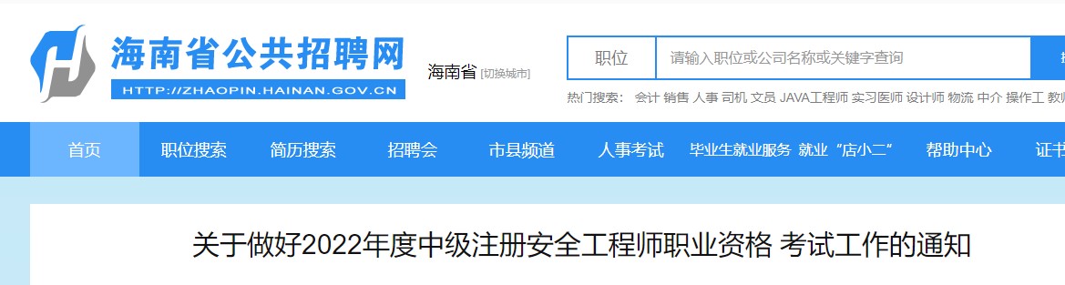 海南關于做好2022年度中級注冊安全工程師職業(yè)資格考試工作的通知