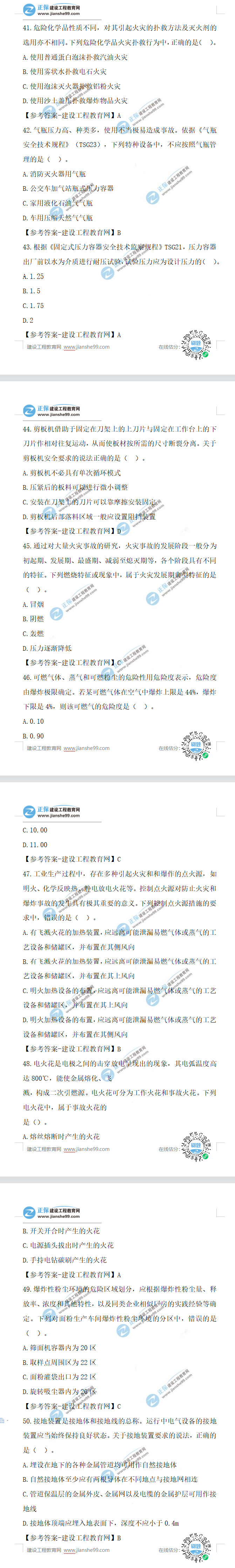 2021年安全工程師考試于10月16日、17日舉行。考試過(guò)后,廣大考生最關(guān)心的問(wèn)題莫過(guò)于“2021年安全工程師生產(chǎn)技術(shù)試題及答案解析41-50題”了,建設(shè)工程教育網(wǎng)考后將會(huì)根據(jù)學(xué)員反饋,及時(shí)匯總2021安全考試生產(chǎn)技術(shù)試題相關(guān)信息分享給大家,并且會(huì)及時(shí)做出答案解析,希望能為廣大安全考生朋友帶來(lái)幫助。