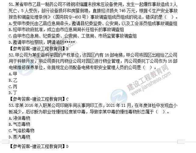 2022年安全工程師考試于10月29日、30日舉行??荚囘^后,廣大考生最關心的問題莫過于“2022年安全工程師生產管理試題及答案解析51-60題”了,建設工程教育網考后將會根據學員反饋,及時匯總2022安全考試生產管理試題相關信息分享給大家,并且會及時做出答案解析,希望能為廣大安全考生朋友帶來幫助。