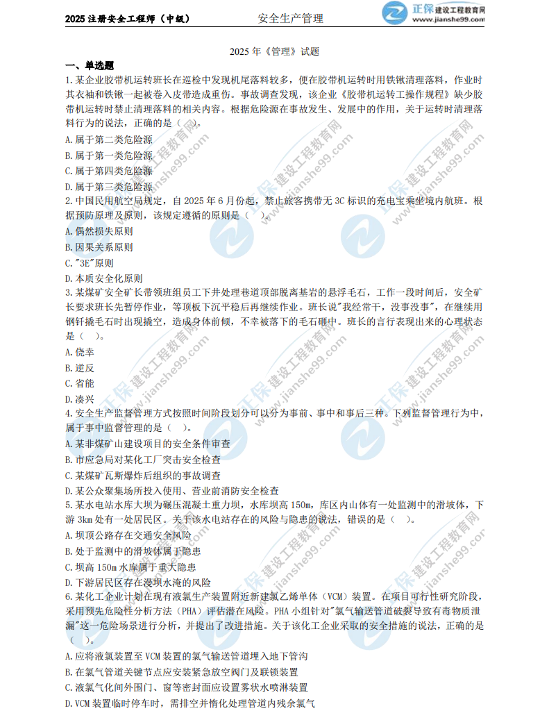 2025年中級安全工程師《生產(chǎn)管理》考試結(jié)束,考生們最關(guān)心的肯定是這一科目試題及答案。建設(shè)工程教育網(wǎng)考后會依據(jù)考生反饋,及時匯總中級安全工程師《生產(chǎn)管理》的試題及答案,期望能給各位考生提供幫助!