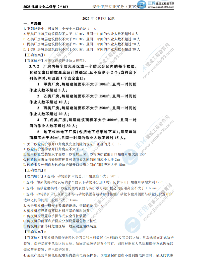 2025年中級(jí)安全工程師《其他安全》考試結(jié)束,考生們最關(guān)心的肯定是這一科目試題及答案。建設(shè)工程教育網(wǎng)考后會(huì)依據(jù)考生反饋,及時(shí)匯總中級(jí)安全工程師《其他安全》的試題及答案,期望能給各位考生提供幫助!