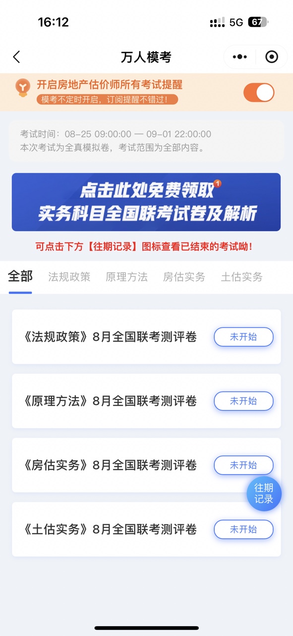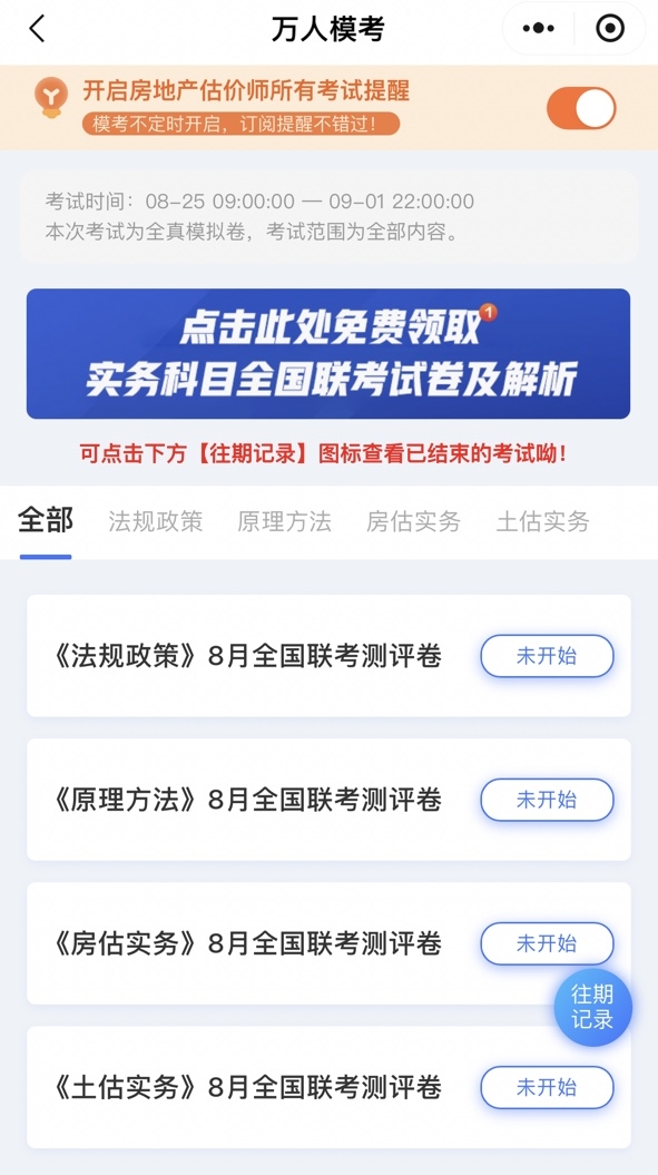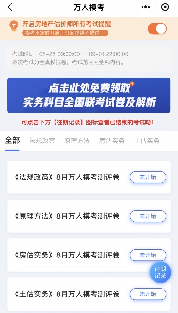 房地產估價師8月萬人模考時間:8月25日9點-9月1日22點