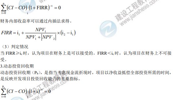 【解析】選項 A 錯誤,財務內(nèi)部收益率是動態(tài)盈利能力指標;選項 D 錯誤,將所求出的內(nèi) 部收益率與行業(yè)基準收益率或目標收益率 ic 比較,當 FIRR 大于或等于 ic時,則認為項目在 財務上是可以接受的。