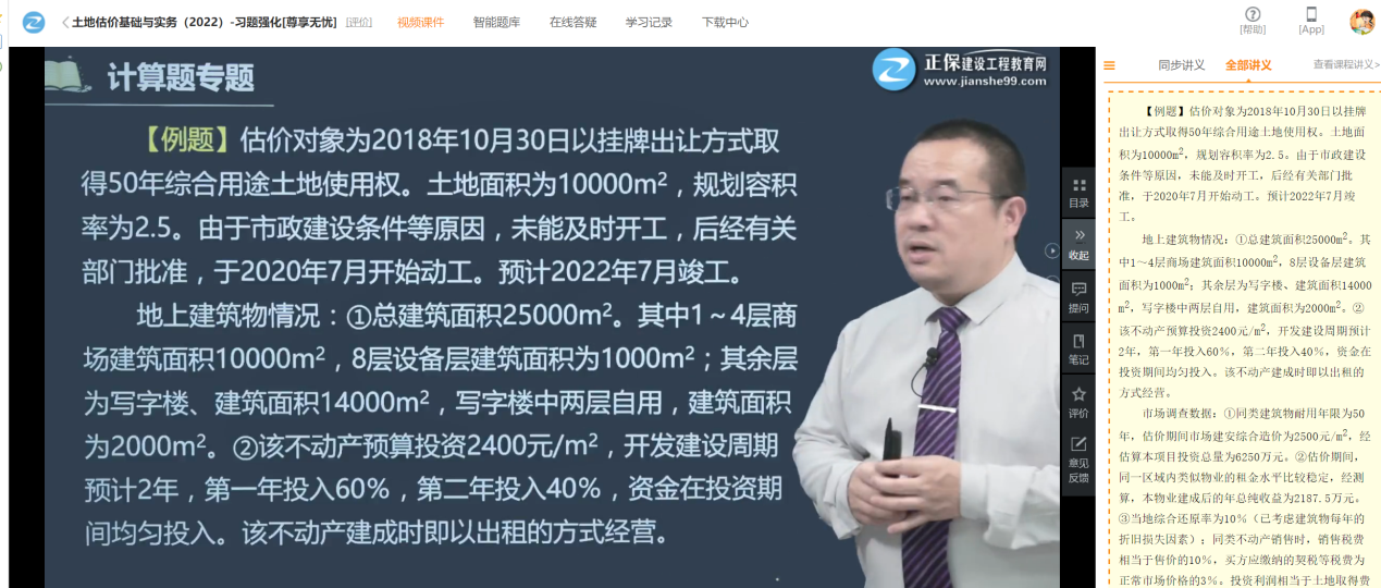 (2)該項目預(yù)算投資2400元/m2,開發(fā)建設(shè)周期預(yù)計2年,第一年投入60%,第二年投入40%,資金在投資期間為均勻投入。經(jīng)調(diào)查,周邊區(qū)域同類型項目平均建安綜合造價為2500元/m2。