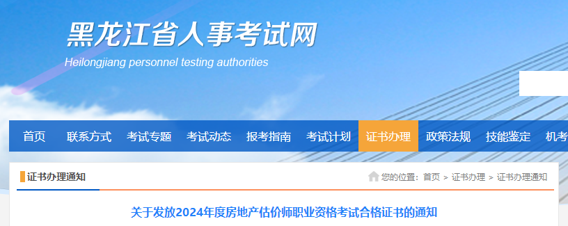 黑龍江2024年房地產(chǎn)估價(jià)師證書領(lǐng)取通知