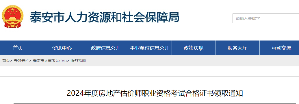 山東泰安2024年度房地產(chǎn)估價(jià)師職業(yè)資格考試合格證書領(lǐng)取通知