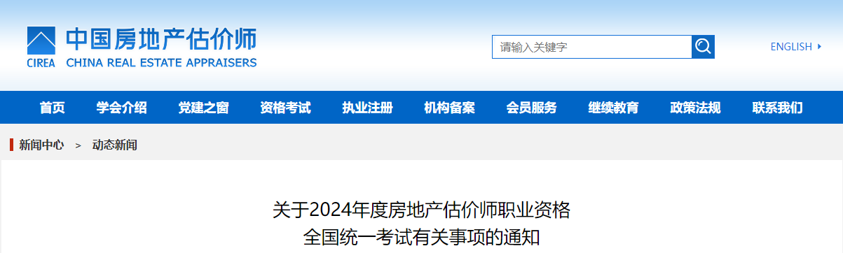 關(guān)于2024年度房地產(chǎn)估價(jià)師職業(yè)資格全國(guó)統(tǒng)一考試有關(guān)事項(xiàng)的通知