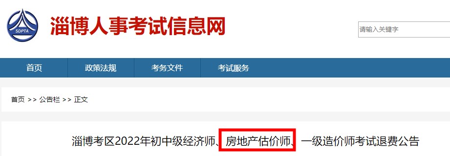淄博考區(qū)2022年初中級經濟師、房地產估價師、一級造價師考試退費公告