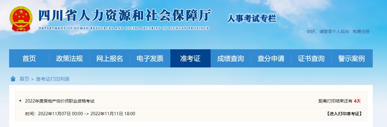 吉林省2022年房地產(chǎn)估價師考試準考證打印時間:11月9日-10日