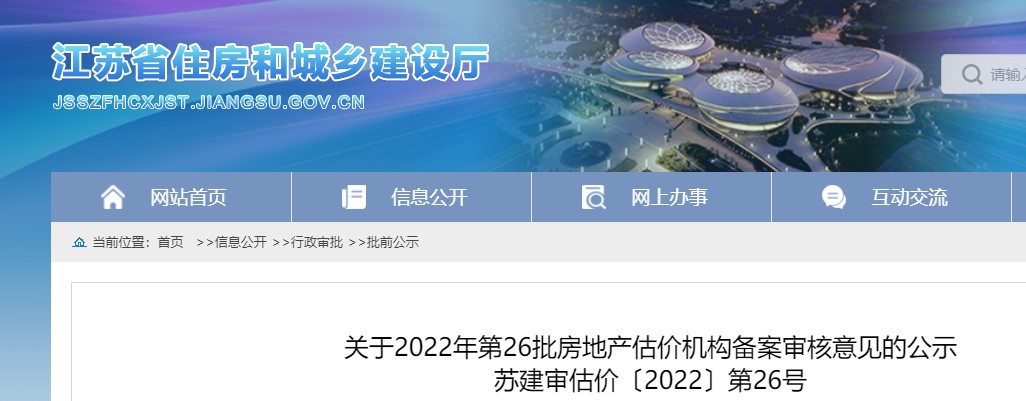 江蘇省關于2022年第26批房地產估價機構備案審核意見的公示