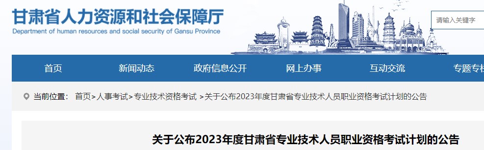 關(guān)于公布2023年度甘肅省專業(yè)技術(shù)人員職業(yè)資格考試計(jì)劃的公告
