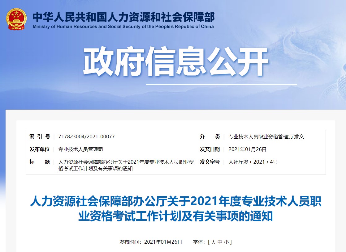 為做好專業(yè)技術(shù)人員職業(yè)資格考試規(guī)劃和管理工作,便于廣大專業(yè)技術(shù)人員參加職業(yè)資格考試,經(jīng)商有關(guān)部門同意,現(xiàn)就2021年度專業(yè)技術(shù)人員職業(yè)資格考試計劃及有關(guān)事項通知如下: