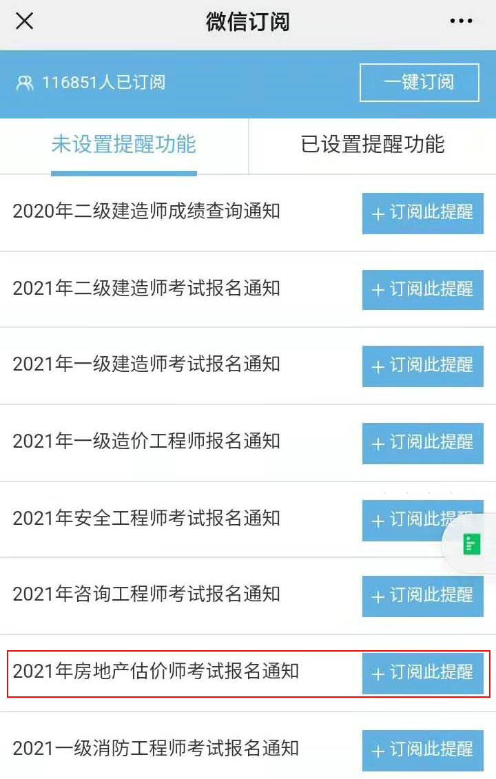 第三步:選擇“2021年房地產(chǎn)估價(jià)師考試報(bào)名通知”-訂閱此提醒