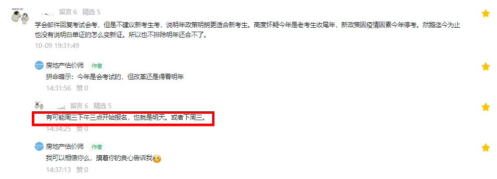 根據(jù)留言內(nèi)容,2021年房地產(chǎn)估價師考試報名有可能周三下午三點開始,也就是明天,或者下周三。