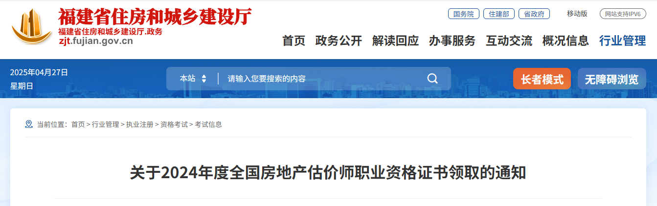 福建省關(guān)于2024年度全國房地產(chǎn)估價(jià)師職業(yè)資格證書領(lǐng)取的通知