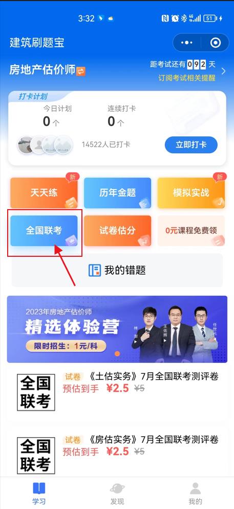 點(diǎn)擊“全國聯(lián)考”進(jìn)入考試入口。