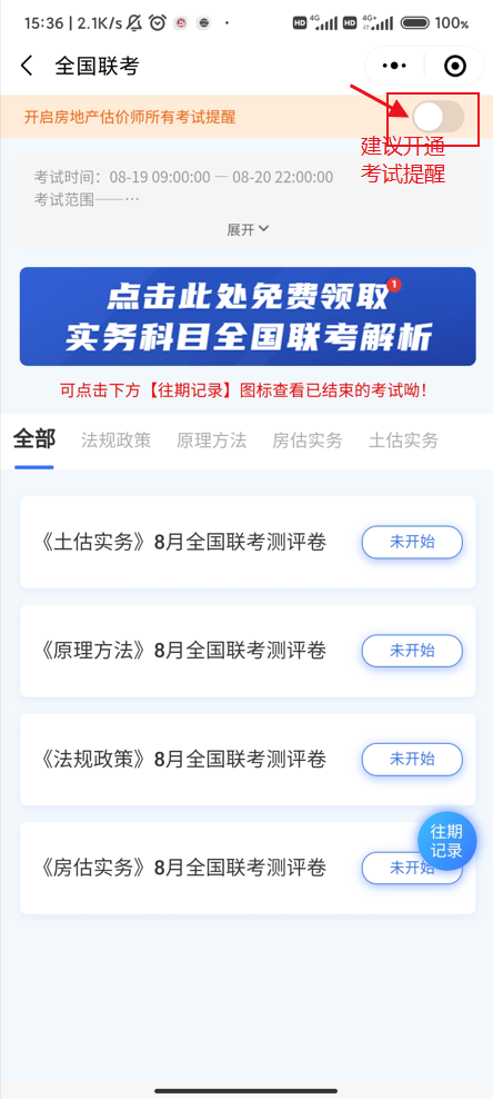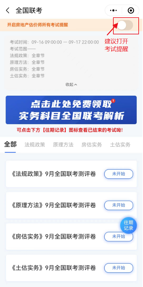 建議開通考試提醒,避免錯(cuò)過房地產(chǎn)估價(jià)師考試。