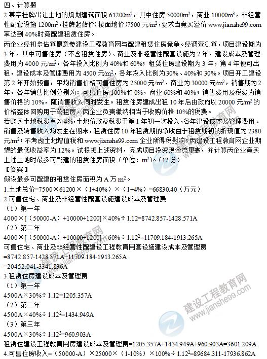 2019年房地產(chǎn)估價師《房地產(chǎn)開發(fā)經(jīng)營與管理》計算題試題及答案解析。房地產(chǎn)估價師考試過后,考生關(guān)注的莫過于房地產(chǎn)試題答案及考試成績,考試結(jié)束后建設(shè)工程教育網(wǎng)將為大家整理并提供2019年房地產(chǎn)估價師《房地產(chǎn)開發(fā)經(jīng)營與管理》試題及答案解析匯總,參加房估考試的同學(xué)可以作為參考預(yù)估自己的考試成績。點(diǎn)擊查看2019年房地產(chǎn)估價師試題及答案解析匯總>>