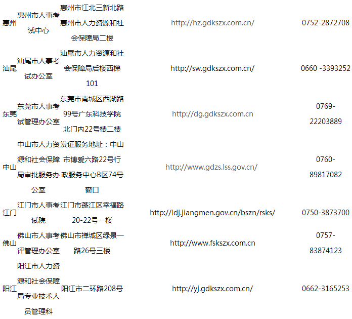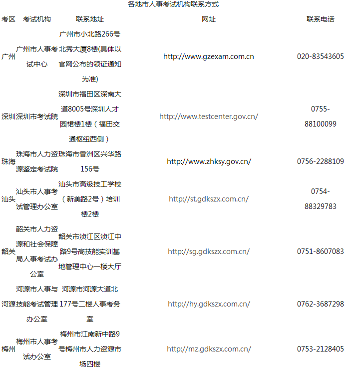 六、其他事項(xiàng):各地市考區(qū)考生的證書發(fā)放事項(xiàng)請(qǐng)咨詢當(dāng)?shù)乜荚嚈C(jī)構(gòu)(聯(lián)系方式見附件)。