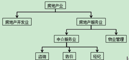 房地產(chǎn)業(yè)主要包括房地產(chǎn)開發(fā)經(jīng)營、房地產(chǎn)中介服務(wù)、物業(yè)管理和其他房地產(chǎn)活動(dòng)。其中,房地產(chǎn)中介服務(wù)和物業(yè)管理合稱房地產(chǎn)服務(wù)業(yè);房地產(chǎn)中介服務(wù)又分為房地產(chǎn)咨詢、房地產(chǎn)估價(jià)和房地產(chǎn)經(jīng)紀(jì)。因此,房地產(chǎn)業(yè)可分為房地產(chǎn)開發(fā)經(jīng)營業(yè)和房地產(chǎn)服務(wù)業(yè),房地產(chǎn)服務(wù)業(yè)又可分為房地產(chǎn)中介服務(wù)業(yè)和物業(yè)管理業(yè),房地產(chǎn)中介服務(wù)業(yè)又可分為房地產(chǎn)咨詢業(yè)、房地產(chǎn)估價(jià)業(yè)和房地產(chǎn)經(jīng)紀(jì)業(yè)。