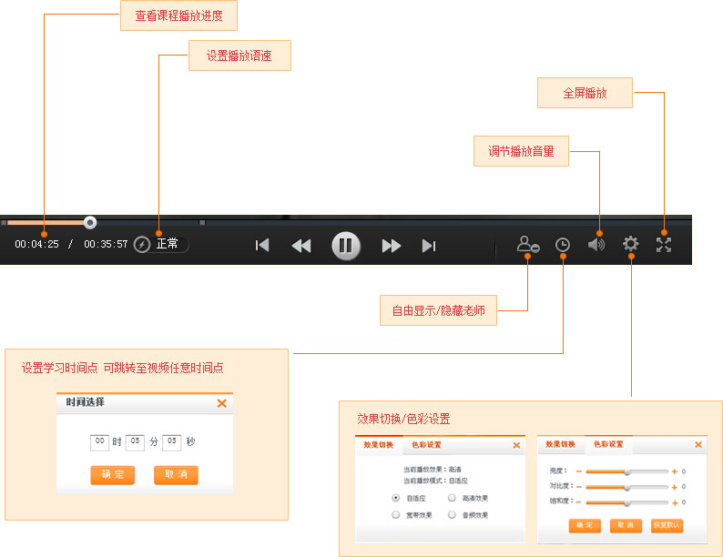 點(diǎn)擊可切換課件播放形式,包括:視頻、音頻和三分屏三種形式。