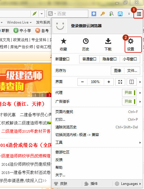 打開傲游瀏覽器-點(diǎn)右上角小扳手-設(shè)置,如圖所示: