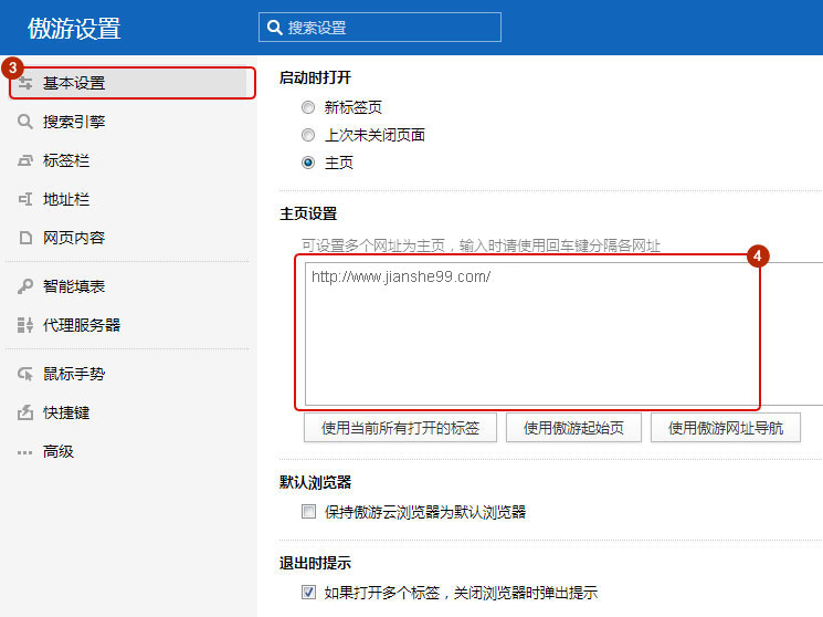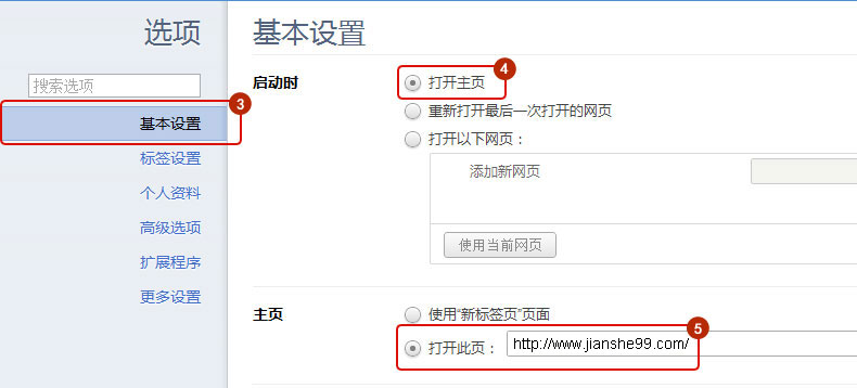 選擇基本設(shè)置,在主頁設(shè)置里輸入網(wǎng)址。