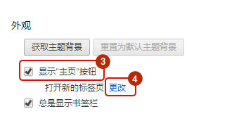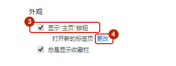 外觀內(nèi)-勾選 顯示主頁按鈕-點(diǎn)更改