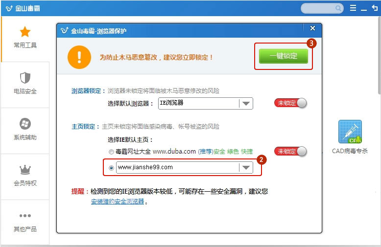 如果您的電腦安裝了以下安全軟件,請(qǐng)點(diǎn)擊以下相應(yīng)鏈接,查看建設(shè)工程教育網(wǎng)主頁鎖定方法。