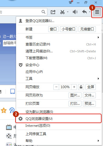 打開QQ瀏覽器,點(diǎn)擊右上角菜單 - QQ瀏覽器設(shè)置,如圖所示: