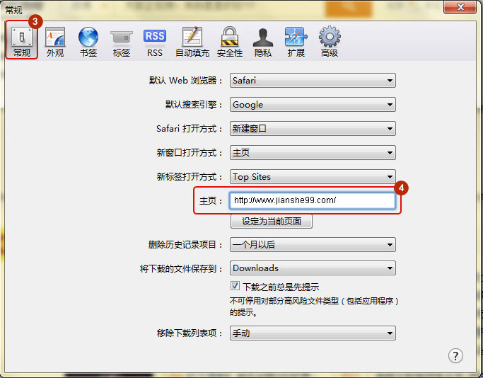 常規(guī)-啟動(dòng)/退出-自定義主頁內(nèi)輸入 www.mm34228.com 確定即可。