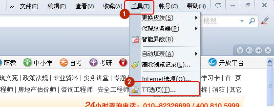 打開TT瀏覽器,選擇工具 - TT選項(xiàng),如圖所示: