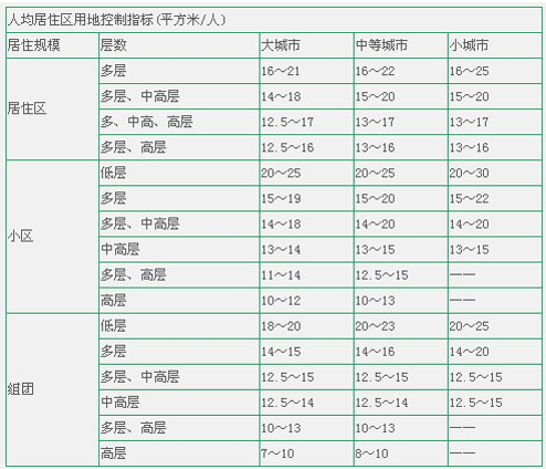 3、人均居住區(qū)用地控制指標,應符合以下圖表中的規(guī)定。