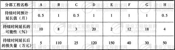 3.風(fēng)險(xiǎn)等級(jí)為“大”和“很大”的風(fēng)險(xiǎn)事件同時(shí)發(fā)生,此時(shí)的工期為多少個(gè)月(寫(xiě)出或在圖上標(biāo)明計(jì)算過(guò)程)?關(guān)鍵線路上有哪些分部工程?