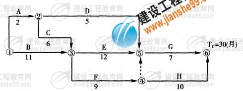 施工至第2個(gè)月末,建設(shè)單位要求進(jìn)行設(shè)計(jì)變更,該變更增加了一新的分項(xiàng)工程N(yùn),根據(jù)工藝要求,N在E結(jié)束以后開(kāi)始,在H開(kāi)始前完成,持續(xù)時(shí)間1個(gè)月,N工作的直接費(fèi)為400元/每立方,工程量為3000立方。