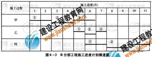 ?。担畬?duì)圖6-1項(xiàng)目施工總進(jìn)度計(jì)劃而言,B分部工程組織加快的成倍節(jié)拍流水施工后,該項(xiàng)目工期為多少個(gè)月?可縮短工期多少個(gè)月?