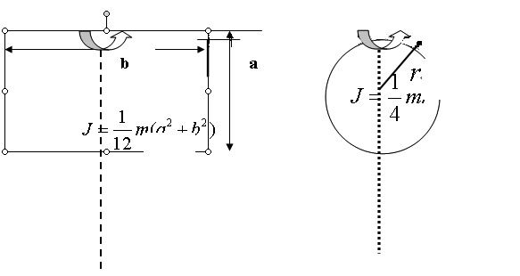 圖4 矩形平板、軸轉(zhuǎn)過(guò)中心且垂直板面和實(shí)心圓薄板、軸轉(zhuǎn)沿直徑的轉(zhuǎn)動(dòng)示意圖