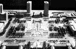 而美國約洛克菲勒中心廣場面積不到半公頃,卻是現(xiàn)代廣場的范例(圖1-3)。所以我認(rèn)為從當(dāng)前的社會需要和可能出發(fā),我們應(yīng)該結(jié)合舊城市改造,城市重要公共建筑以及商業(yè)文化建筑分布,并依據(jù)具體情況可建一些小廣場和小廣場群,這樣花錢少,利用率高,而且有利于提高城市空間品質(zhì)。