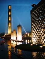無論是歐洲巴洛克的廣場和城市設(shè)計,還是中國封建都城(如紫禁城)及神壇(如天壇),都是通過強烈的軸線和占絕對統(tǒng)治的一個中心(如雕塑、噴泉)來形成一元化的空間,以表達(dá)一種絕對權(quán)力的存在。這往往使其成為與鄉(xiāng)土廣場或日常生活的社區(qū)廣場的一個主要區(qū)別。還廣場以人性與公民性就必須首先打破在封建和極權(quán)意志下形成的一元化空間形式。形成多元化的空間,而都江堰廣場也有一個作為中心的主雕塑,高30m,起到挈領(lǐng)被河水和城市干道分割的四個板塊的作用,利用場地被河流和城市主干道切割后形成的四個區(qū)塊,形成四個功能相對有別,但又互為融合交叉的區(qū)域,動中有靜,靜處有動,大小空間相套。