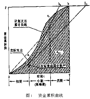 圖1中還畫出了實(shí)際支出曲線,以點(diǎn)虛線表示。把實(shí)際支出曲線和實(shí)際完成固定資產(chǎn)曲線加以比較,可以了解工程成本總的狀況。若點(diǎn)虛線在虛線上面,說明實(shí)際成本超過了預(yù)算成本。反之,實(shí)際成本低于預(yù)算成本。若兩者出現(xiàn)明顯差異,要對(duì)其差異進(jìn)行分析研究,并在控制成本的同時(shí),對(duì)施工采取正確的措施。必須指出的是,過去常常把“實(shí)際支出”當(dāng)成“完成投資”,這是一種十分有害的誤解。結(jié)果把花錢越多誤認(rèn)為完成工程量越大,致使成本失去控制,投資一再增加,造成重大浪費(fèi)。