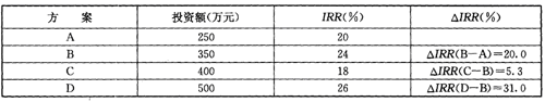 因?yàn)椤鱅RR(D-B)=31%>18%,所以投資額較大的方案D優(yōu)于方案B;