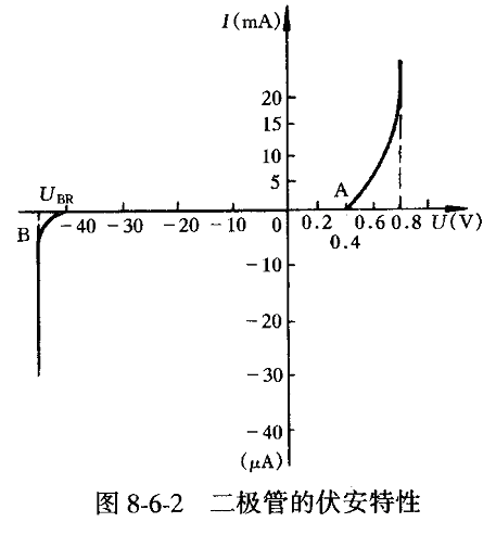1.伏安特性曲線:二極管的伏安特性曲線如圖8—6—2所示,可分三部分討論。
