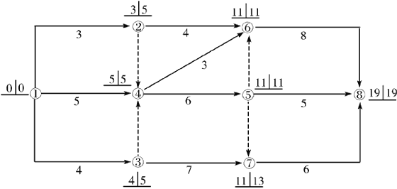 113. 某工程雙代號(hào)網(wǎng)絡(luò)計(jì)劃中各節(jié)點(diǎn)的最早時(shí)間與最遲時(shí)間如下圖所示,該計(jì)劃表明( )。