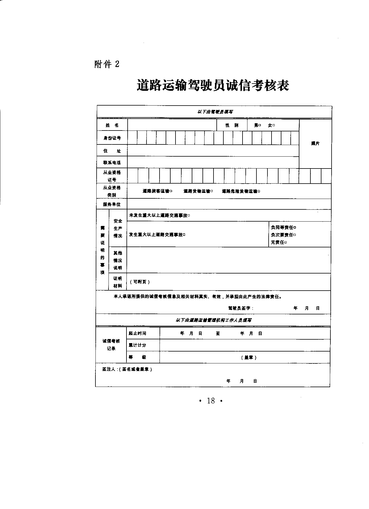 。ㄎ澹兜缆愤\(yùn)輸駕駛員誠信考核表》(式樣見附件2)。